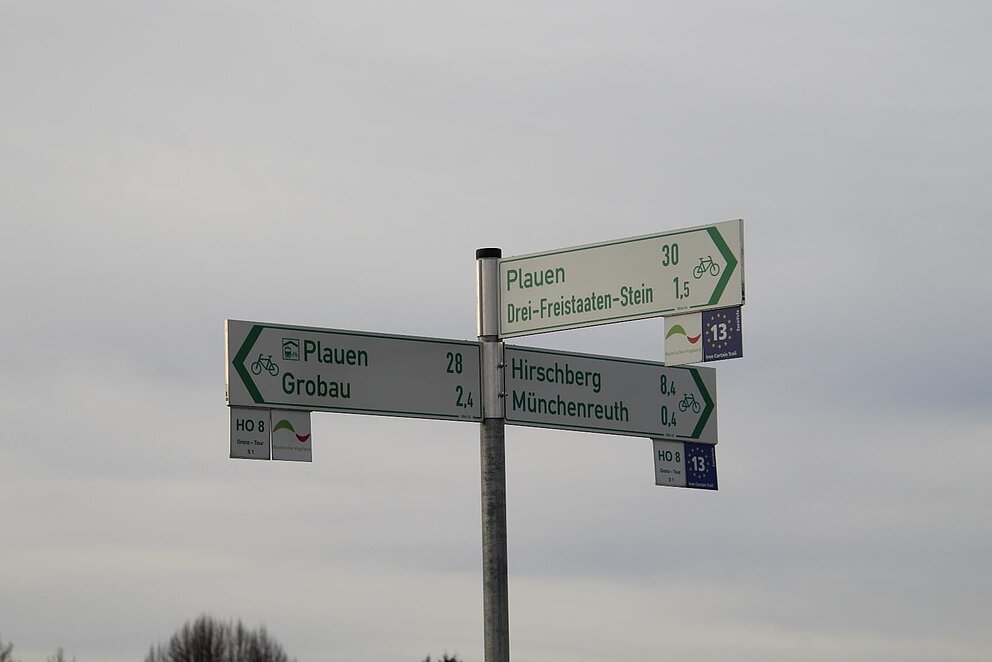 Der neue Radwanderweg verläuft auf ruhigen Nebenstraßen mit mittlerer Anforderung und herrlichen Ausblicken für Freizeitradler und Familien. Beginnend in Kirchgattendorf, dem Sieger (Goldmedaille) beim Landes- und auch beim Bundeswettbewerb "Unser Dorf soll schöner werden - unser Dorf hat Zukunft" führt die Route ein kurzes Stück auf sächsischer Seite an den ehemaligen Grenzübergang Ullitz und von da nach Trogen und Feilitzsch. Am Weidigsteich vorbei kommt man in ruhige Wälder, die immer wieder herrliche Ausblicke ermöglichen, über Münchenreuth zum Drei-Freistaatenstein. Dies ist der einzige Ort in Deutschland, an dem drei Freistaaten Sachsen - Thüringen - Bayern eine gemeinsame Grenze bilden. Weiter führt der Weg auf der thüringischen Seite nach Mödlareuth ("Little Berlin") zum Deutsch-deutschen-Museum. Im Außengelände mit erhaltenen Grenzsperranlagen und einem Demonstrationsgebäude gewinnt man einen realen Einblick in die Geschichte der Deutschen Teilung. Über Töpen gelangt man ins Leuchtholz zur Aussichtsplattform "Petersgrat", wo man einen grandiosen Blick über das Saaletal werfen kann und gelangt weiter über das Silberdorf Isaar (Silbermedaille Wettbewerb "Unser Dorf soll schöner werden - unser Dorf hat Zukunft" auf Bayernebene 2004) zum Ausflugsziel Fattigsmühle. Hier hat man Anschluss an den Saale-Radwanderweg und Jean-Paul-Radwanderweg nach Hof.